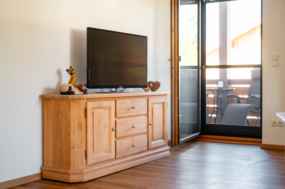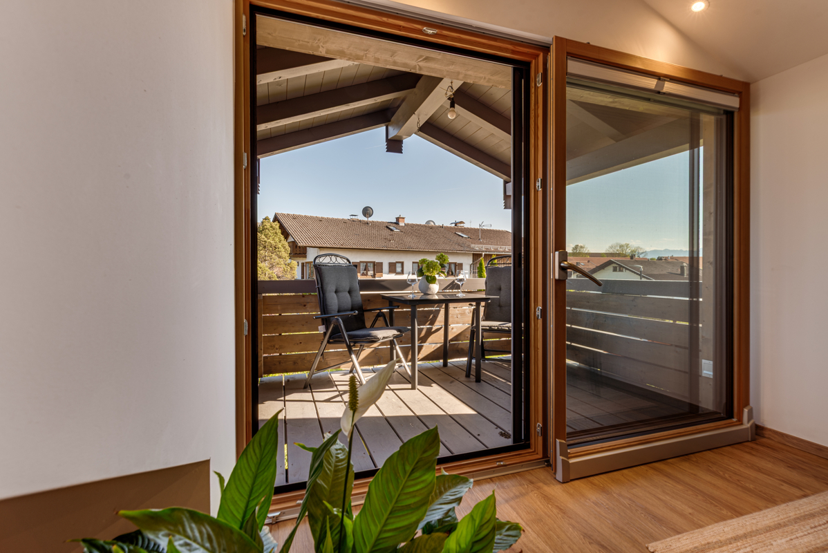 große Schiebetüre zum Südbalkon inkl. Innenplissee und Fliegengitter