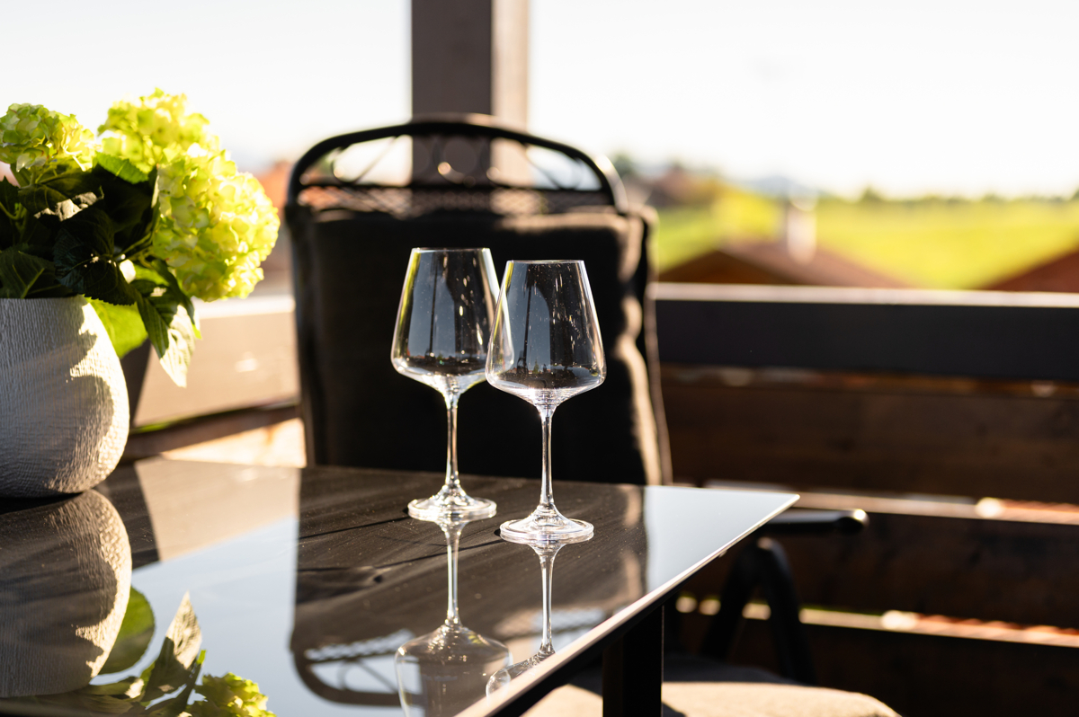Mit 2 Stühlen und 1 Balkon-Esstisch
