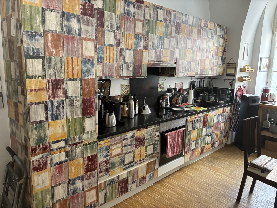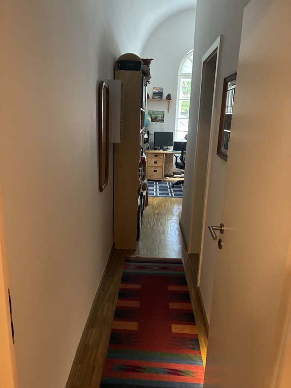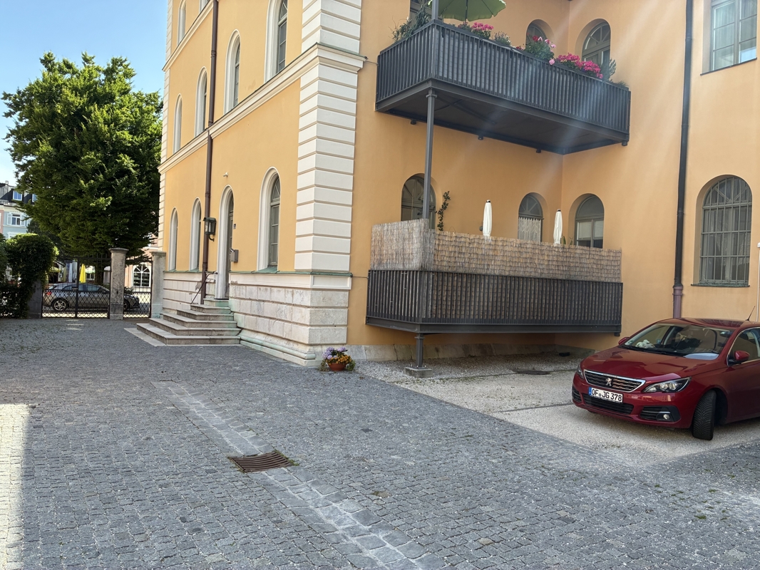 Zur Wohnung gehört ein Kellerraum im historischen Kellergewölbe und ein Außenstellplatz direkt neben dem Eingang.Ein weiterer Stellplatz (Doppelhub) in der Garagenanlage des Anwesens kann bei Bedarf angemietet werden.